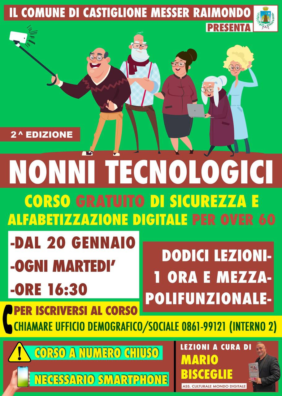 Iscrizioni aperte al ๐๐ฒ๐ฐ๐ผ๐ป๐ฑ๐ผ ๐ฐ๐ผ๐ฟ๐๐ผ ๐ด๐ฟ๐ฎ๐๐๐ถ๐๐ผ โ๐ก๐ข๐ก๐ก๐ ๐ง๐๐๐ก๐ข๐๐ข๐๐๐๐โ organizzato dal ๐๐ผ๐บ๐๐ป๐ฒ di ๐๐ฎ๐๐๐ถ๐ด๐น๐ถ๐ผ๐ป๐ฒ ๐ ๐ฒ๐๐๐ฒ๐ฟ ๐ฅ๐ฎ๐ถ๐บ๐ผ๐ป๐ฑ๐ผ.